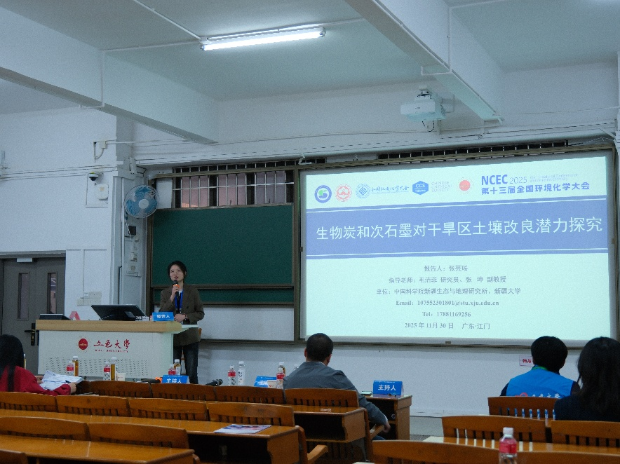 2025年11月28日至12月2日,第十三届全国环境化学大会在广东成功举办。大会主席、中国科学院生态环境研究中心江桂斌院士致辞并宣布开幕,30多位院士、8000多位专家学者,共同聚焦环境化学前沿、探讨生态治理路径。新疆生地所四名研究生积极参与交流,在“生物炭环境化学与绿色工程实践”分会场和“研究生专场”分别作报告,报告系统阐述了我所中亚干旱区生态系统监测与变化研究团队在环境化学领域的最新研究进展,提升了研究所科研工作在国内环境化学领域的知名度和影响力。
